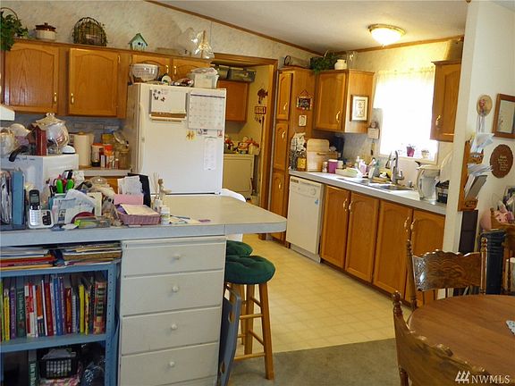 Excellent meadow shy 2 acres with 1992 Manufactured home. New in 2012 re-plumbing, toilet, well pump, pressure tank, caulking, exterior paint & gutter guards installed. Home needs flooring in one of the bedrooms. Multiple outbuildings in need of repair. Insulated shop & carport. An old home on the property is used for storage. Set far back off highway.