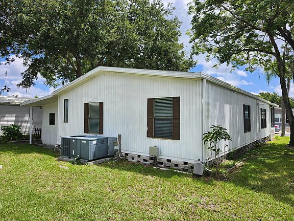 55+/86/2BD/2BA/936SQ. FT./PARK FEE IS ONLY $625.00/ALL NEW INSIDE REMODEL IN 2021/NO STRIPS TEXTURED DRY WALL/FRESH PAINT/COMPLETE NEW KITCHEN/This home is all new inside with fresh paint, drywall finished with no strips. The kitchen has all new cabinets, counters, sink and appliances. There is a large island with seating on two sides and storage on the other. The color palate gives the kitchen a modern feel with soft gray cabinetry, bright white appliances, subway tile gray backsplash and recessed lighting. All new vinyl laminate floors throughout. New vanities and fixtures in the baths, raised panel doors have been installed throughout. This is an open floor plan with a large master suite with an all new extra long vanity, lower storage, linen closet, and recessed lighting as well as natural window light and area for makeup vanity with all new lighting and fixtures, and a separate toilet and step in shower area. The large double walk in closets have sliding raised panel doors. The guest room has a step in closet with sliding mirrored doors. The guest bath has a shower/tub combo. There is an extra long driveway with storage shed/utility room with washer and dryer at the end. The glass enclosed front lanai is ceramic tiled, has a ceiling fan, and separate AC with easy access curved steps that lead to the covered outside patio area for outside seating. This home is located in the very people friendly and pet friendly 55+ community of Hacienda Heights which has a great clubhouse and pool area with many activities to choose from, centrally located to shopping, restaurants, and a great medical community, and only a very short distance to Tampa, the beach areas, and Tampa airport. This is a must see bargain! Don't miss out. Schedule your showing today.