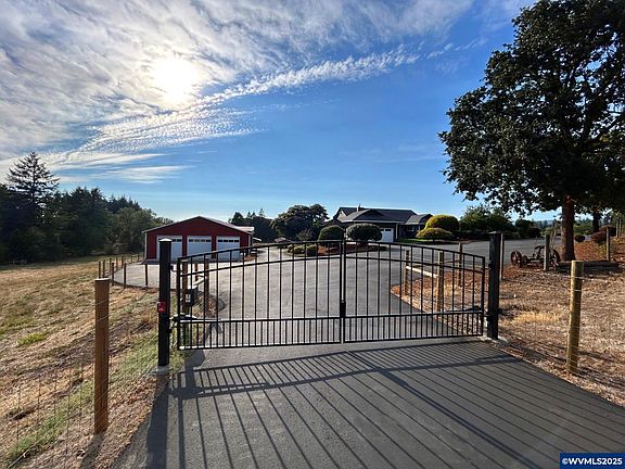 Experience the perfect blend of country tranquility and modern luxury in this 4-bed, 3-bath daylight ranch on 9.3 fully fenced, breathtakingly beautiful and usable acreage. Gated entry leads to a private estate featuring crossed-fenced pastures, a creek, and a serene oak grove. This property is yearning for animals, complete with a two stall barn, a hay loft and a chicken coop. In addition to a (built to the highest standards) 62x84 shop like no other you have ever seen. Equipped with a re-bar enforced concrete floor, gas onsite, incredible amounts of power including 30 and 50 amp plugs and designed as a pull through for large vehicles. Too many important details to mention here, really a must see. Inside the home you'll find a chef’s kitchen boasting high-end appliances, custom cabinetry, engineered hardwoods, granite countertops and sweeping mountain and valley views. The open-concept living space flows seamlessly to a deck with just the right sunset orientation, perfect for entertaining. Lower-level family room adds versatility with a dedicated entrance, 2 more bedrooms, a full bathroom and incredible amounts of unfinished space for storage or future customizations. The care and thought put into this estate from the 6" deep asphalt driveway to the auto switch generator able to power the entire property isn't going to be easily matched. The raised garden beds, the above ground heated pool, the orchard of fruit trees and the babbling water feature at the front entry, I haven't even had a chance to mention yet. The amount of details there are to share is lengthy. I would encourage you to request the property video, the full amenities list and schedule your tour.