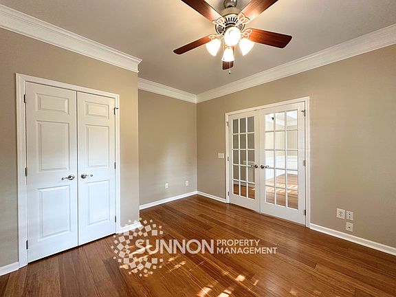A private office is conveniently located near the front of the home, ideal for remote work or study. The sunroom at the back provides a bright, relaxing space overlooking a wooded yard with a large patio, perfect for outdoor gatherings.