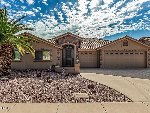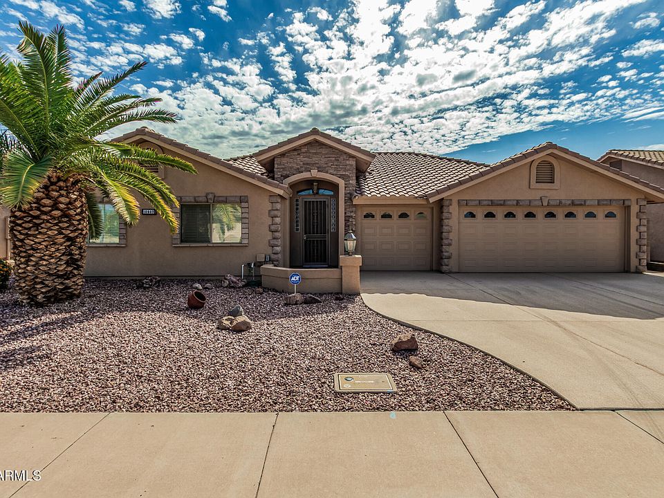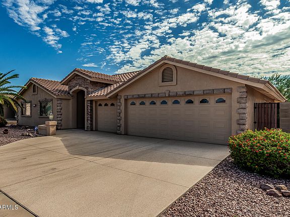 Welcome to this gorgeous home in the sought-after 55+ community of Sunland Springs Village! Inside, you'll find plantation shutters, vaulted ceilings, and the spacious living room provides the perfect space for entertaining. Kitchen is a delight, featuring granite counters, rich wood cabinets, a bay window, and a breakfast bar for casual dining. Primary suite boasts dual sinks and a generous walk-in closet, while the laundry room includes a utility sink. Garage comes with built-in cabinets and a workshop area. Check outside to the serene backyard with a covered patio, perfect for enjoying your favorite beverage. Enjoy resort-style living with access to a sparkling pool, fitness center, golf, and more! Act now!