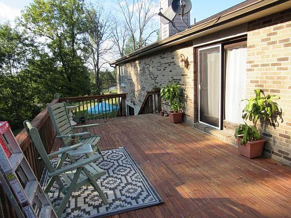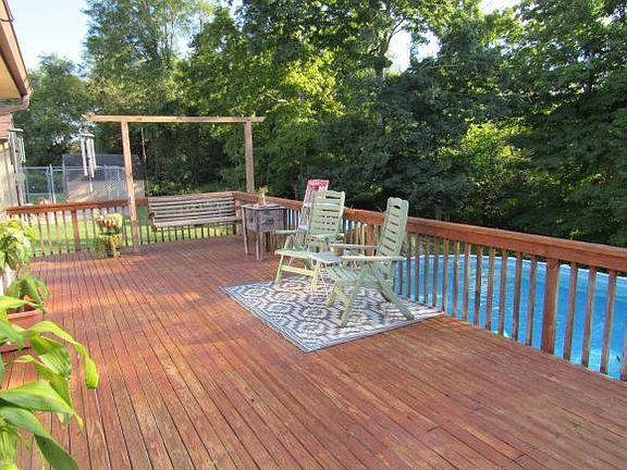 Well kept ranch with wrap around deck & pool. 3 bedrooms, 2 full baths. Basement studded out to be finished. 36x24 garage, 24x12 dog kennel & electric fence for dogs. Security system, roof-1year, heat & cooling 4yrs old. City sewer avail. Hardwood flooring throughout, ceramic tile, & gas log Fireplace.