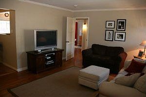 Charming "Pottery Barn" style Traditional 3 bed/2 bath + office/den w/ bkyd access. Updated w/ new dual pane windows throughout, new central air conditioning and heating. Crown molding, hardwood floors. Sun-filled kitchen with gas range & built-in microwave opens to dining area. 2nd bedrm with attached bathroom. Spacious backyard & oversized garage with extra storage space. Bolted foundation & newer gutters. Move-in ready!
