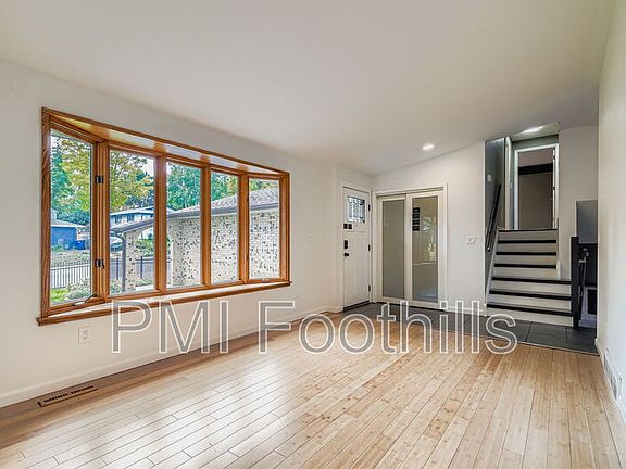Beautifully maintained and completely renovated Corner Lot - 4 Bed, 2 1/2 Bath single family home located in a quiet neighborhood just a short distance from Olde Town Arvada. Enter to find an open and airy living room featuring hardwood floors and a large bay window. The kitchen provides ample cabinet and counter space and boasts stainless steel appliances, custom lighting and gas range. Up a short flight of stairs discover the primary bedroom with ensuite bath, 2 additional well-apportioned bedrooms and 1 full bath. Downstairs you'll find an additional living space w/gas fireplace, bedroom, attached half bath, and non-conforming 5th bedroom or office leading to a walkout basement. Low-maintenance backyard w/ balcony off kitchen, large deck and patio. Front yard and backyard are fully fenced and landscaped. Store cars and equipment in the extended 2-car garage. Additional parking space for car or trailer off NE side of house.