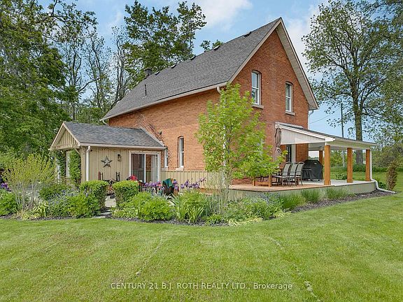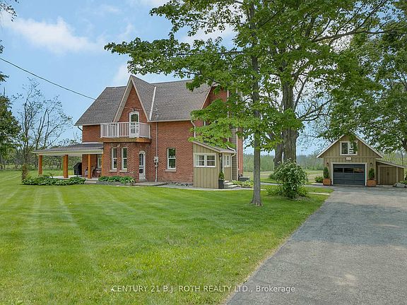 Have you ever dreamt of living in a century home rich with history and timeless charm? This extraordinary property dates back to 1841, with only four families ever calling it homeyou could be the fifth. The original 1840 structure was replaced by a stately brick residence completed around 1900. Thoughtfully updated while preserving its historic character, this home offers the warmth and elegance of yesteryear with the comfort and convenience of modern living.From the moment you step inside, youll notice the custom craftsmanship and unique flair that sets this home apart. Enjoy 9-foot ceilings, wide pine floors, high baseboards, custom wood-accented ceilings, built-ins, and inventive closets throughout. The beautifully renovated bathrooms and chefs dream kitchen reflect both style and function. Fresh Benjamin Moore paint adds a cohesive, fresh feel across every room.The propane-heated garage offers loft storage and doubles as a practical yet charming workspace. Step outside into meticulously designed landscaping that includes vibrant flower beds, lush vegetable gardens, and scenic views of the rear fields. Relax on the side porch with a sunset view or gather around the backyard firepit under the stars.Significant recent updates include: roof (2018), propane furnace (2022), central air (2023), new well pump and pressure tank (2024), new fridge (2024), new stove (2025), and rental hot water tank (2025).Conveniently located just a short drive from shopping, schools, the recreation center, Kempenfelt Bay, and Friday Harbour.This is a rare opportunity to own a truly special propertywhere heritage and imagination come together in perfect harmony.