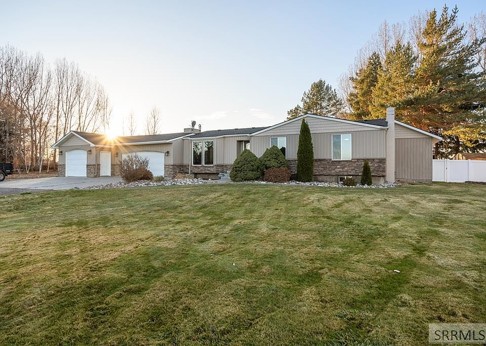 Charming and beautifully updated 5 bed, 3 bath home on 2 peaceful acres in Rexburg. Tucked away on 1091 Country Rd, this property welcomes you with mature trees, open space, and a comfortable blend of modern upgrades and country charm. Inside, you'll find new luxury vinyl plank flooring, updated lighting, and a cozy gas fireplace that creates the perfect gathering spot. The kitchen and baths shine with granite countertops and tiled showers. The spacious master suite offers a relaxing retreat with a beautifully updated bathroom with a second cozy fireplace and a generous walk-in closet. Downstairs features a walk-out basement with a dedicated theatre room—perfect for movie nights, guests, or extra living space. Outside, the property includes outdoor sheds, plenty of room to play or garden, and a large 3-car garage. With central air and thoughtful updates throughout, this home is move-in ready and full of warmth. A wonderful opportunity for comfortable country living just minutes from town.