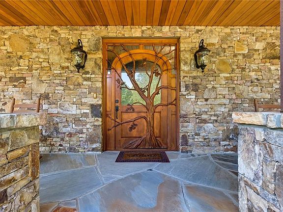 Tucked into a serene, wooded backdrop, this stunning custom home blends rustic charm with refined elegance. The stone facade and rich wood accents create a warm, welcoming presence, that beckons you to linger and enjoy the peace and serenity found at every turn on this private 15-acre estate. The front porch showcases a hand-carved wood front door and matching windows. Upon entry, enjoy a 2 story living room with stacked stone fireplace adorned with a rich, dark wood mantlepiece. Gourmet chef's kitchen w/ gas stove, SS appliances, and double wall oven. Great place to entertain with granite counter tops, large spacious island, and double beverage cooler. Radiant flooring in kitchen as well as primary bathroom, including shower seat. Large primary suite on main level with extra large dressing room and spa shower with therapeutic elements including multiple shower heads for thermal contrasts and chromatherapy features for many benefits. Upstairs you will find loft space overlooking living room, large bonus room w/ private balcony, office space w/ large built-in bookcases for library. Entertain your guests in the large game room complete with saloon doors and multiple areas for tv placement so no football game is missed! At halftime you can mix cocktails at the built-in bar! Terrace level has 2 guest bedrooms, large guest bathroom with double vanities, and living space with stacked stone fireplace. Beautiful flagstone rock leading to pool area. An abundance of storage throughout the home has been a favorite feature of owners. Relax on the expansive deck space or multiple covered porch areas and catch the sunset every night. Large heated and cooled garage with drive through capabilities and tons of cabinet storage. Installed generator provides extra peace of mind to ensure comfort is never lost during power outages. Property includes main home, 5 STALL HORSE BARN, and LARGE 3 STORY WORKSHOP. Top level is guest apartment, middle level has concrete flooring with garage door and has tons of room for storage. Lower level has 2 more garage doors and is currently being used as the shop. Between middle and lower levels, 12 cars can be parked. Pristine and manicured yard with many flowering plants and bushes. FENCED PASTURE area, asphalted driveway, and PRIVATE GATED ENTRY complete this magnificent property!
