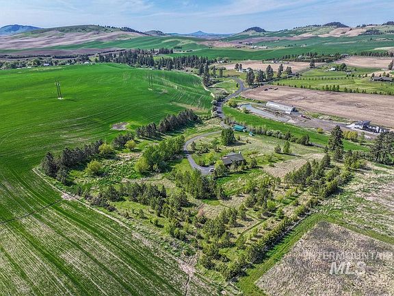 Lovely cedar sided home on a beautiful 10 acre property with incredible views just north of Moscow in Viola, ID. This property has a little bit of everything with a variety of trees, pasture, a shop, garden area, orchard and fenced dog run with kennel. The home was custom built in 2001 and has been nicely updated and features vaulted ceilings for an open feel and large windows to bring in light and frame the panoramic views. Central heat and air keep you comfortable year round with the wood stove for cozy winters. Enjoy outdoor living on the deck and lower patio in addition to plenty of space for your animals, pets and gardening!