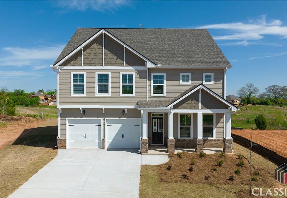 This Summit homesite offers a beautiful view of the lake off your covered deck perfect for watching to the sunrise: ~BASEMENT LOT WITH LEVEL BACK YARD ~GATED COMMUNITY WITH AMENITIES LOCATED 2 MILES FROM I-20 ~HIGHLY SOUGHT-AFTER MORGAN COUNTY CHARTER SCHOOL SYSTEM ~LARGE LOFT BONUS ENTERTAINMENT AREA ~HARDWOOD ON MAIN AND UPGRADES GALORE ~up to 10k seller paid closing cost and low interest rate incentive as low as 4.99% using preferred lender. Complimentary refrigerator and washer/dryer upgrade added. The central family room opens to the island kitchen with spacious pantry and stainless-steel gas appliances. Guest can enjoy the comfort of a bedroom with full bath on the main that features cultured marble counters and tile floors. Hardwood floors throughout the main level provides a seamless flow to this open floorplan. Hardwood stairs lead to an incredible recreation room perfect for games and movies. Upstairs offers an oversized private bedroom suite with impressive bath, and spacious secondary bedrooms which offer lots of natural light and plenty of storage space. Your new home is built with an industry leading suite of smart home products that keep you connected with the people and place you value most. Plus, an internal pest control system that allows pest control without entering the home. You are within walking distance of the community pool, playground, tennis courts, trails and lakes. Photos used for illustrative purposes and do not depict actual home. stock photos, characteristics of lots vary.