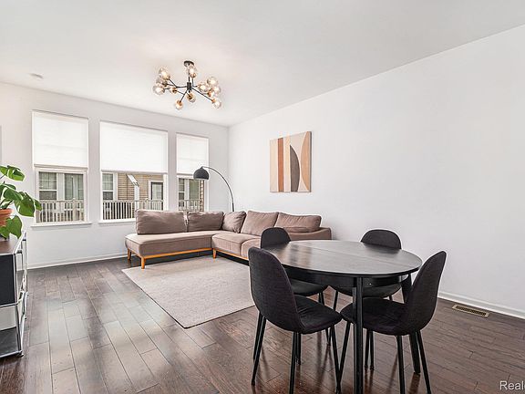 Move right into this bright and cheerful townhouse close to all Royal Oak has to offer! Open floor plan offers lovely hardwood floors, ceramic baths, carpeted bedrooms, contemporary lighting and plenty of windows for natural lighting. Enjoy ample cabinetry, large island with seating, quartz countertops and stainless steel appliances in the kitchen, making entertainment easy. Spacious living room with many windows and a door to the balcony. The primary suite offers a large walk-in closet and bath with granite vanity. First floor laundry. Great location to enjoy restaurants, shopping, festivals, and more. Measurements approximate.