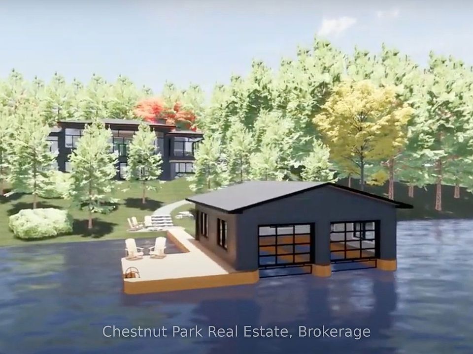 This is such a beautiful lot on the highly coveted South Portage Road on Lake of Bays - close to Toronto, Dwight and Huntsville. A golden opportunity awaits on the shores of Lake of Bays. Build modern with glass and steel or more traditional - it is a blank canvas. This rare property offers the chance to build your dream cottage and a two-slip boathouse on one of Muskoka's most prestigious lakes. With 200 feet of pristine frontage and 1.05 acres, the lot is gently sloping ideal for a walkout basement design with captivating lake views. The driveway is already installed, and a short stroll brings you to the waters edge where you will find excellent privacy, all-day sun, and breathtaking wide-open vistas. From your future dock, gaze down the lake toward Wee Island or paddle across for a quiet swim in this peaceful bay.The building envelope is set a comfortable 66 feet back from the shoreline (stakes in place for easy reference), allowing for minimal steps to the lake and a seamless indoor-outdoor lifestyle. Imagine waking to expansive lake views and evenings spent watching the sunshine from your deck. This location combines serenity with convenience set on a quiet, no-through road with year-round municipal maintenance, yet close to Muskoka's premier amenities: championship golf, downhill and cross-country skiing, hiking and biking trails, charming towns, and of course endless boating on the interconnected chain of Lake of Bays.This is truly a canvas for your Muskoka legacy. Conceptual renderings from a reputable local builder are available for inspiration - this style could be built here but no permits are currently in place. Shore Road Allowance is owned. Whether you envision a modern family retreat or a timeless cottage, this property provides the foundation for generations of memories in a setting of natural beauty and refined Muskoka living. Drawings, site plans, boathouse concepts (drafts - available request only).