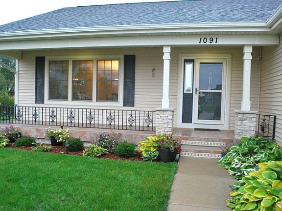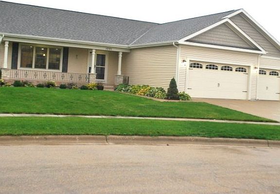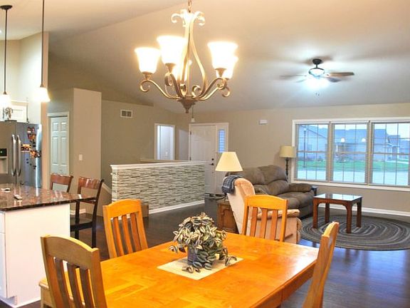 This 5 year old ranch is better than new with, modern lighting, feature walls, tiled surrounds in bathroom, and so many extra details! This open floor plan features beautiful wood laminate flooring throughout the main living space, vaulted ceilings, open kitchen w granite countertops, and spacious center island.3 bedrooms, and master suite with double closets. Plenty of room in the 3 car attached garage for your vehicles and all the extras... Enjoy your monrning coffee on the beautifully tiled front porch, and grill out on the deck out back. The full basement has egress window and is plumbed for additional bath. New fresh landscaping and a new storm door. Hook up for tv behind mirror on feature wall. Seller will leave the wall mount.