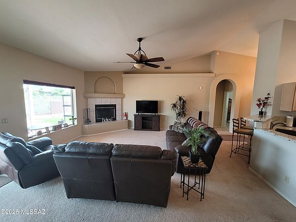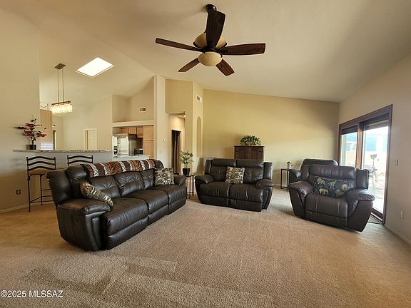 Spectacular Panoramic View of Rincon & Catalina Mountains. .44 acres!! Open and spacious, split floor plan! Completely updated! Envy of the neighborhood! HUGE back yard that backs to desert arroyo (that's right... no neighbors behind you). The back-yard retreat offers an endless entertaining vibe, to include tasteful landscape throughout, brick pavers, cement/concrete slabs, special seating arrangement for your guests. For the Golf Enthusiasts... your own Private Putting Green coupled with artificial grass... and a refreshing/relaxing in-ground pebble tec jacuzzi spa for those cozy cool nights of star-gazing! The side yard offers a large HOA approved wood workshop/work storage. The double gate access to your back yard is wide enough to roll a 4x6 utility trailer and/or your small RV toys! The inside... is tastefully updated and decorated with a HUGE Great Room, a wood burning fireplace, large Pella windows and large 8ft sliding glass door allow you to enjoy the beautiful Rincon Mountains. The home boasts vaulted ceilings and offers a large beautiful ceiling fan! The kitchen has been updated with new granite counters, stainless steel appliances, new window bay blinds in dining/nook area, skylight and new floor tile. The primary bathroom has been completely updated/renovated: new cabinet/top/fixture, new large format tile in shower/tub surround and new floor tile, and new shower/tub fixture system. This lovely and spacious home offers a split floor plan. The Master-Suite is HUGE and offers large Pella windows overlooking the Rincon Mountains and a large beautiful ceiling fan. The master bathroom has been completely updated/renovated with beautiful new 72" vanity cabinet with double sink and tasteful inlaid tile counter-top. You'll love all of the tasteful tile work throughout, to include in the large walk-in shower. Relax in your Mr Steam personal home steam/sauna room, which can also function as a secondary shower enclosure. The flooring was also recently updated with a beautiful diagonal tile layout. Large walk-in closet. Light & bright with lots of large windows throughout. All windows in the house were updated with dual pane Pella Brand windows! In 2021 a new Pentair/Hayward filtration system was installed for the outdoor in-ground jacuzzi. The interior of home has been freshly painted with neutral color paint throughout. New 40gal gas hot water heater installed 2025. The HVAC unit is a TRANE and runs impeccably. The home offers a salt soft water system which works as it should, but is not currently being used. The home is clean, updated, turn-key and ready for new owners to enjoy! Calling all winter visitors.. it's move in ready to include furnishings if desired!! This is a very nice home with an amazing and entertaining back yard vibe! Oh and no homes behind you! The Silverado Hills Community is well sought after, established, quiet, well kept, private, neighborly and surrounded by lots of natural desert scenery and abundant wild life. Don't miss out on this one! Ready for immediate move-in and enjoyment.. The furnishings can convey if desired. One of the owners on deed is a licensed realtor.