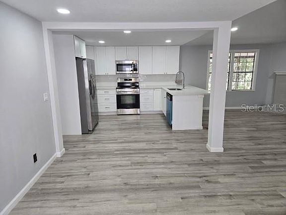 Call today for this nicely upgraded three bedroom two bath house in Winter Springs. This home features new upgraded laminate flooring through out. Open floor plan with Kitchen, dining and living area with fireplace. Large Primary bedroom with bathroom suite. Walk in closets in all bedrooms. Recess lights in all rooms. House is close proximity to uptown Winter Springs, shopping areas, SR 434 and toll Rd 417. Call today!