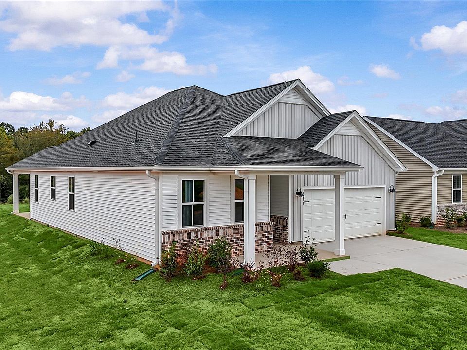New Construction Home of the Week – Welcome to your future dream home located in a prime location, halfway between Greenville & Spartanburg! This spacious home is a beautifully designed single-story residence offers 4 spacious bedrooms, 2 modern bathrooms, and a large open floorplan perfect for entertaining or relaxing with family. Nestled in a neighborhood with all private homesites, this property provides both space and comfort inside and out. Step into a bright and airy living space featuring 7" luxury vinyl plank flooring, a sleek brick front accent, and a stunning tray ceiling in the Primary Bedroom. The heart of the home—the kitchen—boasts elegant white cabinets, a Whirlpool gas range, and a full suite of Whirlpool appliances, perfect for culinary enthusiasts. Enjoy year-round comfort and efficiency with a tankless water heater and thoughtful energy-saving features. Unwind on your covered patio, ideal for morning coffee or evening gatherings. This home is located in the convenient neighborhood of Sweetwater Hills, known for top-rated schools, making it perfect for families and commuters alike. Close & convenient to all medical facilities and shopping, & w/in 30 mins of Greenville/Spartanburg airport & w/in 60 mins to 3 lakes, multiple state & national parks w/scenic mountain view drives & plenty of biking & hiking trails. Don’t miss this opportunity to own a brand-new home that combines quality, comfort, and convenience. Schedule your visit today!