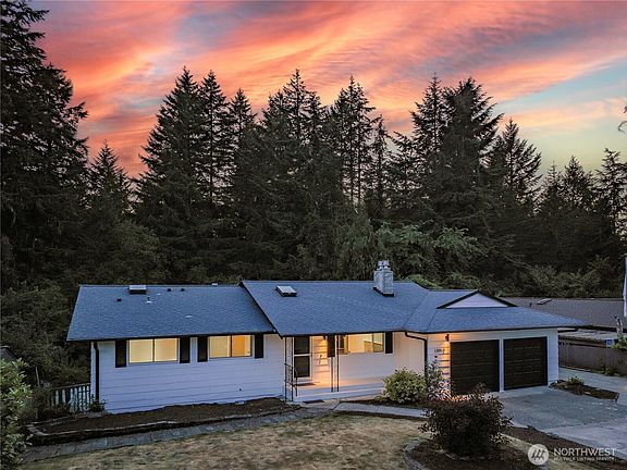 Time to take another look! Fresh new paint job completes this beautiful and fully remodeled mid-century beauty 4 bed, 3 bath home with 2,384 sq ft on nearly ¼ acre—no HOA! Step outside the cookie cutter with this standout property combines timeless charm with modern elegance in a character-rich neighborhood. Gourmet chef’s kitchen with granite countertops, high-end appliances, and custom cabinetry. Real hardwood floors on the main level, LVP throughout the spacious finished basement featuring a built-in bar and butcher block counters. Enjoy a large private backyard oasis with a brand-new deck backing to North JBLM and Farrells Marsh Wildlife Area. Covered front porch, RV parking, and just minutes to downtown Steilacoom and JBLM.
