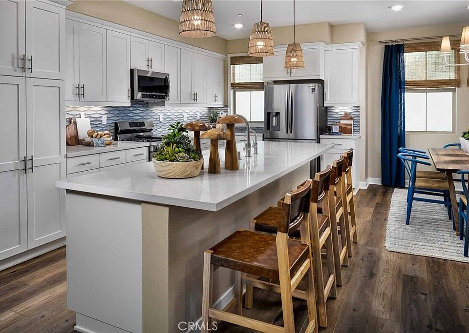 This home is a Residence Six, which offers 1,877 square feet of thoughtfully designed living space. The home features 4 bedrooms and 3.5 bathrooms, including a bed and full bathroom on the first floor, an expansive great room, with large kitchen island, stainless steel appliances, and private balcony for dining alfresco. Other notable features are a 2-car side by side garage, upstairs laundry room, a walk-in closet at primary bedroom, and ample storage throughout. Buyers will appreciate included features such as white shaker cabinetry, stainless steel appliances, quartz counters, flat screen prewire at select locations, and a garage outlet for EV car charger. This smart home is built with modern technology, such as ring doorbell, smart thermostat, and Brilliant smart switches all included.