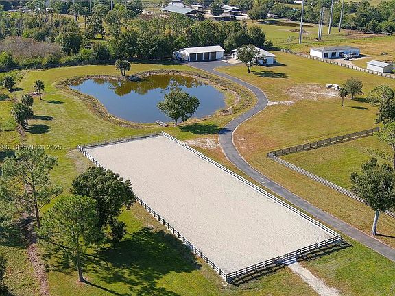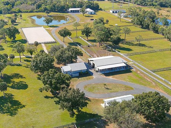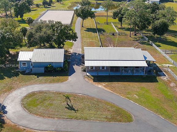 FLORIDA HORSE PROPERTY! This is a 20.22-acre TURNKEY equestrian dream, offering a great location. Farm is fully Fenced and Cross Fenced w/ 4 board fencing, lag bolts and individual gates, and features multiple newly renovated buildings, including an immaculate 5+ stall Main Barn, a 5+ stall Secondary Barn, a 2 bed/2 bath modern and updated Farmhouse, Hay Barn with A/C, a 66x198 Riding Arena, Pond, a 4 Bay Garage w/ Car Lift and A/C and an attached Efficiency Apartment with a kitchenette and full bath, and an 1,800sf Storage Building. Trees abound to offer shade in each green pasture for a total of 11 Enormous Turnout Pastures and 2 smaller. Reverse osmosis water system throughout. Survey available. Located close to Babcock Ranch, shopping, airports, feed stores, veterinarians, and I-75.