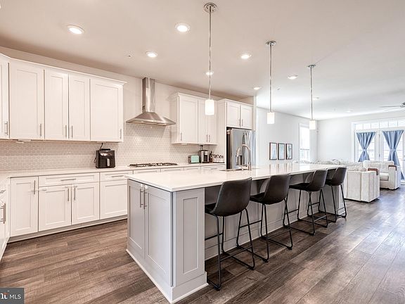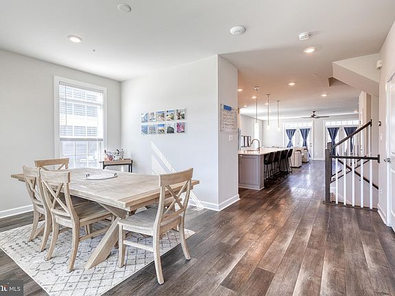 Welcome to this beautifully maintained end-of-row townhome in the thriving Greenleigh at Crossroads community, built in 2021. Featuring 4 bedrooms and 3.5 baths across approximately 3,437 sq ft of living space, this home has it all. Step into an open floor plan with dining room, kitchen and living areas on the main level. The gourmet kitchen boasts stainless steel appliances and a spacious layout with tons of cabinet space and functionality. Retreat to the large primary bedroom, complete with two walk-in closets, a double vanity, and a large double shower head shower in the en-suite bathroom. Two bedrooms and a full bathroom complete the upper level. A finished basement adds flexibility with the fourth bedroom that can be used as an office, gym, etc, and a large family room, while the outdoor trex deck provides the perfect spot for relaxing or entertaining. The detached two-car garage offers off-street parking and storage. Positioned within a vibrant neighborhood with amenities such as walking trails, a pool, clubhouse, playground and more, as well as shops, dining, parks, and convenient access to I-95 and I-695, this home blends modern comfort with everyday convenience.