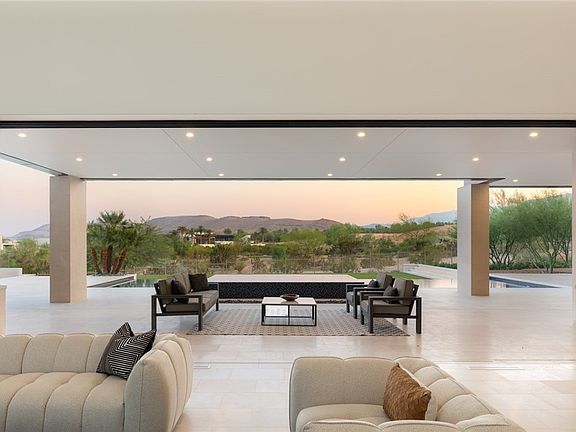 Completed in 2024, this all-new custom estate in The Summit sits on a private cul-de-sac overlooking the Tom Fazio-designed championship golf course. Blending modern elegance with warmth, it’s flooded with natural light and features disappearing glass walls for seamless indoor-outdoor living. A grand porte-cochère entry leads to a motor court and detached 4-car garage. The chef’s kitchen boasts a butler’s pantry, pot filler, espresso machine, and double ovens. Downstairs, the expansive primary suite includes a sitting room with a fireplace, his & hers custom baths, and closets. A theater and climate-controlled wine room also grace the lower level. Upstairs offers four bedrooms & media room. Pocket doors, floating stairs, and walls of glass elevate the design. The covered patio leads to a resort-style infinity-edge pool, raised waterfall spa, built-in BBQ, and panoramic balconies—all moments from The Summit’s private clubhouse and amenities.