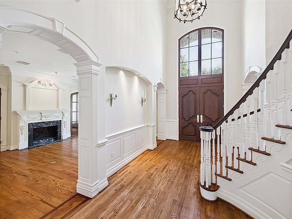Outstanding home with impeccable millwork, stately façade, inviting interiors & incredible location! ROOF 2025*. This home features a grand-scale family room with 12ft ceiling that opens to the spacious kitchen, light-filled breakfast room & covered back patio. The kitchen is the heart of the home with expansive breakfast bar, central island & quality cabinetry. Entertain with ease at the full bar with ice maker and beverage fridge, plus a separate wine room. Stunning dining room with Iconic Gracie wallpaper. Handsome library with fireplace, richly paneled walls & soaring ceiling. Oversized primary suite with tray ceiling & spa-like marble bath with jetted tub, glass shower, large vanity area & huge closet with packing island. Exercise room down. Upstairs game and media rooms with wet bar. Generous secondary bedrooms. Large backyard complete with bocce court & firepit. Oversized 3-car garage with built-in workshop. Home office. Gated parking + Circular Drive.*per Seller.