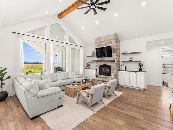 LUXURY, LIFESTYLE, SERENITY! Welcome to your modern farmhouse retreat on 10 pristine acres! You are greeted with 16' vaulted ceilings, exposed wooden beams, walls of windows, and an open layout! The gourmet kitchen impresses with café series appliances, quartz countertops, oversized island, breakfast nook, coffee bar, and a butler's pantry! A wood stove is nestled in floor-to-ceiling stone in the livingroom. The primary suite occupies its own wing with a spa-inspired bath featuring double vanities, dual shower, and a standalone tub! The opposite side of the home offers an office and 3 large bedrooms, each boasting closets with custom built-ins. Outstanding features include 10' ceilings, 8'x3' doors, heated bathroom floors, upgraded insulation, hi-eff HVAC, backup generator hookups, 40'x40' insulated garage, hardy plank siding, 30-year roof, 2 wells, and in-ground conduit for future shop electrical connection. Minutes to Latah Valley, HWY 195, and I-90. See attached doc with more info