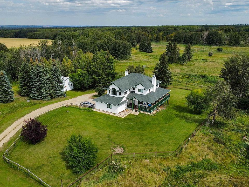 Just minutes from Edmonton & Spruce Grove, this beautiful 8.3-acre property offers the perfect blend of privacy & accessibility. Boasting 2,531 sq ft, this home features 5 bedrms & 3.5 bathrms, perfect for families! The main floor welcomes you with great room with cozy gas F/P, perfect for relaxing. The spacious kitchen with wall oven, gas cooktop & an abundance of cupboards. The dining area has access to the expansive wraparound deck; ENJOY the sunsets! A main floor den is ideal for home office, while a laundry rm & W/I back closet off the 24x24 attached garage for convenience. Upstairs are 4 generous bedrms plus a bonus room! The primary has stunning views of the yard & nature reserve, a 5pc ensuite & W/I closet. The F/F WALKOUT basement includes the 5th bedrm, 3 pc bathrm, storage & rec space. Added barn/shed for all your toys. Surrounded by natural beauty & just a short drive to all amenities, this property offers peaceful acreage living without sacrificing convenience!