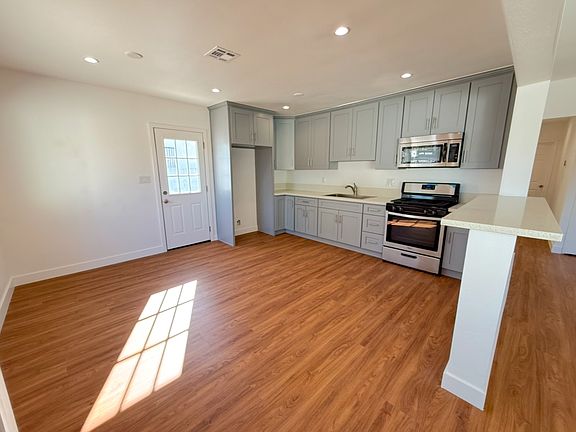 This beautifully remodeled 3-bedroom, 1 bathroom front unit of a duplex offers modern living at its best. Featuring all new flooring throughout, fresh paint, recessed lighting, bright & spacious bedrooms, stainless steel appliances in the kitchen, and a brand new side-by-side washer and dryer in-unit. Enjoy year-round comfort with AC/heating and relax on your private patio. There is a gated front yard as well as 2 parking spaces in the back. Close proximity to markets, dining and the 5 freeway.