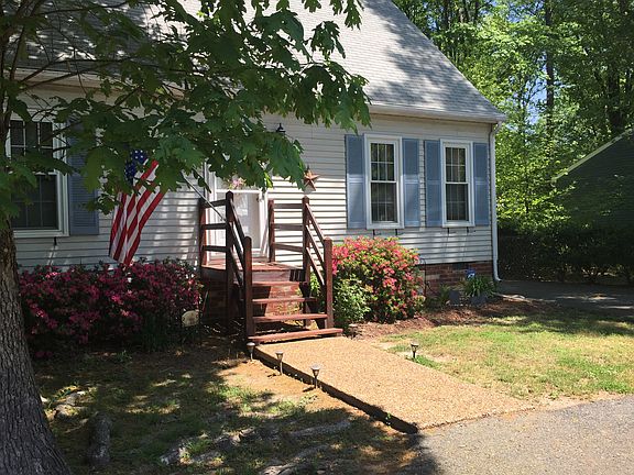 Charming 3 bedroom, 2 bath Cape Cod with full rear raised dormer. Walking distance to Robious Park. First level features foyer, large living room, & dining area with access to rear deck, overlooking fenced-in back yard. Kitchen includes electric range, refrigerator, dishwasher, and crown molding. Also, hall bath with fiberglass tub, and first floor bedroom or family room with brick fireplace/gas logs & 2 closets. Second level features 2 more large bedrooms, hall bath with fiberglass tub, & laundry area, and the washer & dryer convey. House includes vinyl replacement windows, asphalt drive, and new heat pump installed 5+/- years ago.