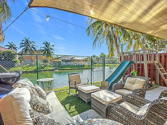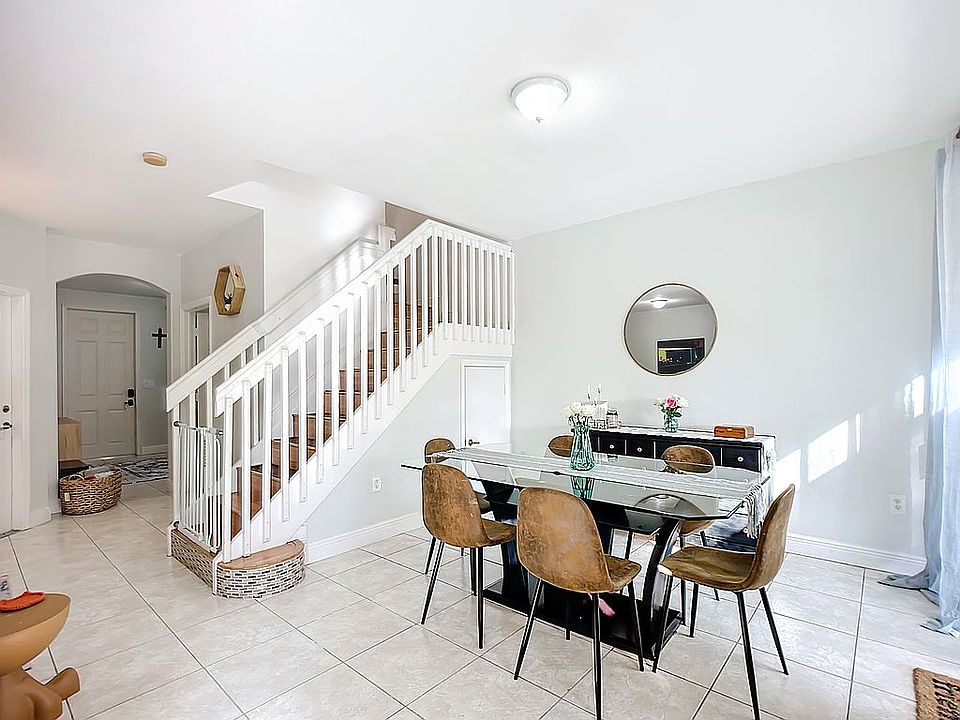 Step inside to an open and airy first floor featuring tile flooring, a generous living/dining space, and a modern kitchen with updated cabinetry, stainless steel appliances, and plenty of storage. Large sliding doors fill the home with natural light and lead you to your private backyard oasis — perfect for grilling, relaxing, or watching the sunset over the lake.