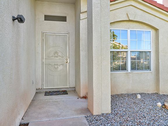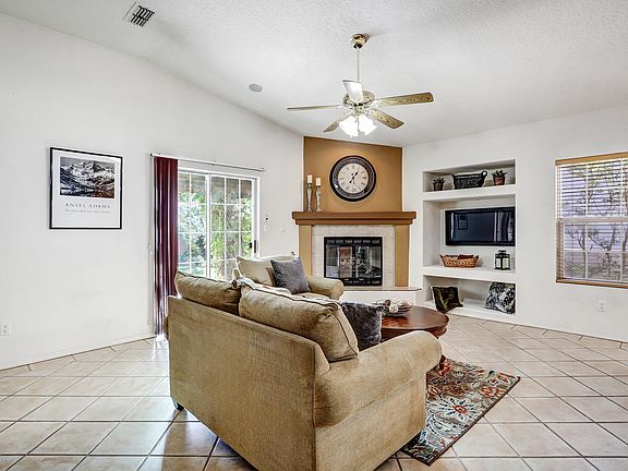 Welcome home to this beautiful 3 bedroom/ 2 bath single-story property featuring high ceilings, plenty of natural light, and a cozy fireplace in the living area. The open kitchen includes a skylight, a breakfast nook and ample counter space. Enjoy year-round comfort with refrigerated air and ceiling fans in every bedroom. The spacious owner's suite offers a jetted tub, walk-in closet and backyard access. Relax under the pergola while taking in the beautiful Sandia mountain view. Ideally located near the city limits of Rio Rancho and Albuquerque for the perfect blend of convenience and tranquility.