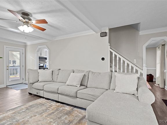 - Description: LVP, Ceiling Fan, Beamed Ceiling, Crown Molding