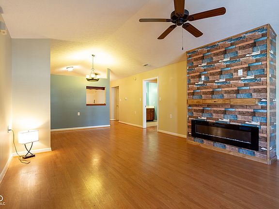 Really nice 2 bed, 2 bath plus den, condo in 55+ community with split bedroom concept. Features include hardwood flooring throughout the entire condo. Walk in shower in the primary along with a huge walk in closet. Want a dog? It has the perfect dog run (but... seller can remove if you do not want it there). Screened in patio for enjoying your morning coffee, or a cold beer at night. Landscape rocks are glued down so zero maintenance. Two fireplaces (60 inch electric in the living room, with peel & stick wallpaper so it can easily be changed to your choosing). Gas fireplace in the den. Tree planted last year. Condo is on a cul-de-sac with two additional parking spots at the end.