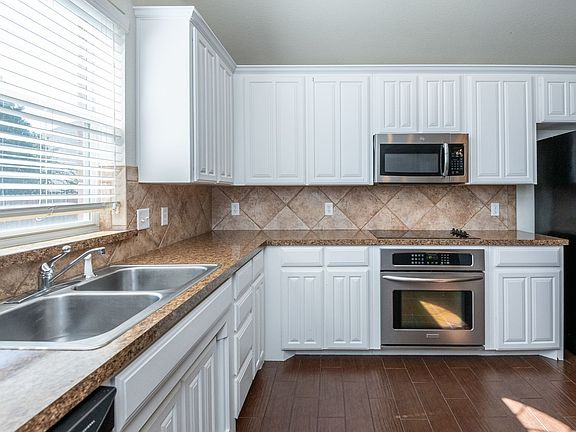 Meticulously clean house with open concept, abundance of cabinets in kitchen, pantry, large island with granite, stainless appliances. Built in china cabinet with granite, wood look ceramic in living room, hall, kitchen and dining. Carpet in bedrooms. Vaulted ceilings, covered patio, sprinkler system. This beautiful house could be your next home.