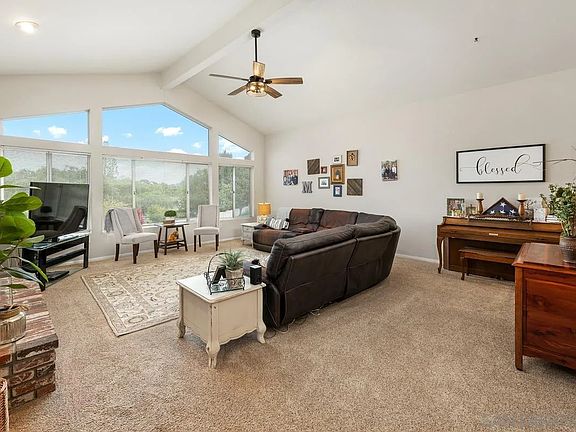 Lovely Hidden Meadow Home end of culdesac. All living space on one level once you ascend the stairs from your 3 car garage. Great views come check this beautiful 3 bedroom house out. Large Master suite. Very quiet and private. Dining room can become a 4th bedroom. Home has whole house solar completely paid for.  The community of Hidden Meadows offers a resort style pool and tennis plus the local 18 hole golf course is pay per use at very attractive rates. The views from this home and the deck are of Palomar Mountain, Mt. Gorgonio and the San Bernardino Mountains. Backyard is very low maintenance, with mature fruit trees.null