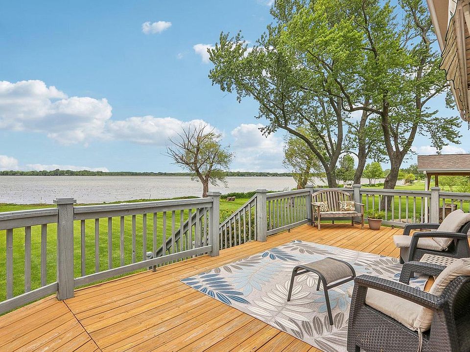 Spectacular unobstructed view of CAMP LAKE from your private deck One of the larger area lakes, CAMP LAKE offers 3 public boat launches along w/a nearby community pier for kayaking, water skiing, canoeing & year-round fishing & GORGEOUS SUNSETS! Features incl. beautiful wood, LVP & ceramic flooring, granite countertops, cathedral ceilings & gas FP. Kitchen has breakfast bar for casual dining & a formal dining area. LR has lots of natural light w/new patio doors leading to a huge WRAP AROUND DECK. Upper 3 BRs are beautifully appointed & spacious w/owner on-suite bath & a 2nd full bath. LL has a 3/4 bath & a large open rec. area w/new patio doors leading to a quiet outdoor cozy nook. Garage has built-in storage. ONE HOUR FROM CHICAGO makes it the perfect weekend or permanent getaway.