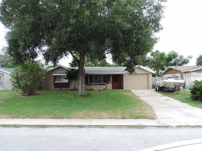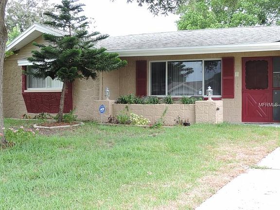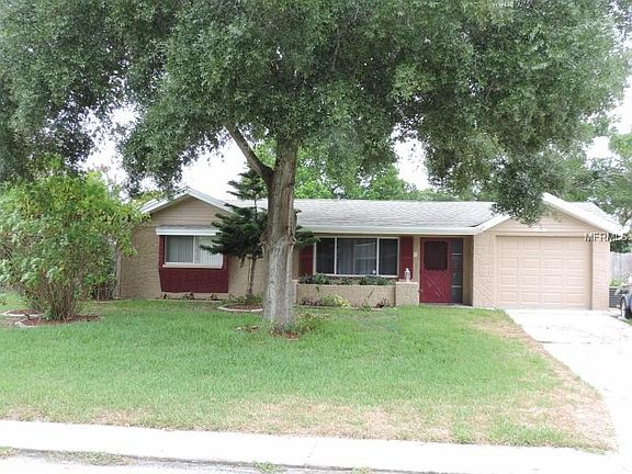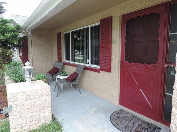 Welcome Home to a very tastefully renovated 2 bedroom, 2 bath, 1 car garage with a Pool! Enjoy sitting outside on the front porch shaded by the mature oak tree. The home has been freshly painted inside and out. As you enter the home, you are welcomed into the living room with the warm tones throughout the house. This ranch style home features a custom built-in as you enter into the kitchen allowing for extra storage. The kitchen showcases crown molding, stainless steel appliances, granite countertops, wood faux vinyl planking, a tray ceiling with light fixture and gorgeous backsplash to make it complete. As you are in the kitchen you can easily enjoy your guests in the eat in dining area as well as the great room currently being used as the music room which has the second bathroom tastefully decorated with tile flooring. Head out through the enclosed lanai so you don't miss the sparking pool. Laundry room leads to the one car garage and features washer/dryer and utility sink. The Freezer does not convey. All room measurements are to verified by buyer for accuracy.