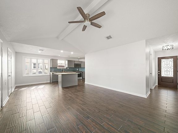 This charming Sagemont residence perfectly blends classic character with modern updates.Recently remodeled, this 4-bedroom, 2-bath home is full of light and style, featuring high vaulted ceilings and all hardwood and ceramic tile flooring—easy to clean, no carpet! The kitchen wows with granite countertops, a breakfast bar, and plenty of cabinet space. Bedrooms include a primary suite with an updated en-suite bath.