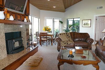 Best Golf Course Views in Hidden Meadows! Gorgeous Panoramic Views of Multiple Holes & Fairways on the Front 9. High Ceilings, Spacious Rooms & Architecturally Interesting w/ Updates Throughout including Kitchen & Baths. Two Bedrooms/Two Baths Downstairs w/ an Additional Master Suite/Guest Quarters Upstairs w/ its Own Private Entrance. Cul-de-Sac, Close to Fwy & Shopping. Comm. Pool & Tennis Courts w/ HOA Dues only $330/YEAR. Leased Solar with Low Utilities.