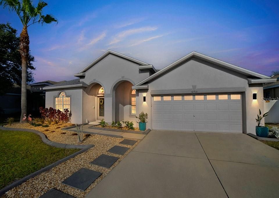 Your All-Season Escape in Tampa Bay! Step into luxury living of Tampa Bay, where this 4-bed, 2-bath beauty awaits at the end of a peaceful cul-de-sac. Boasting 2300 sq ft of elegance, be greeted by soaring 11-foot ceilings that set the stage for a grand entrance! What steals the show? Your very own HEATED pool under a screened in lanai welcomes you with a waterfall centerpiece and is an oasis beckoning year-round, swims at a cozy 85-90 degrees. Imagine the joy of endless poolside relaxation, all yours to savor every season! Unwind in the spacious family room with breathtaking triple sliders framing your pool view, seamlessly connecting indoor-outdoor living. A kitchen fit for culinary delights awaits, adorned with kitchen-aid appliances. Complimenting the pool is direct access cabana bath and pool access from the primary bedroom. This haven is turn-key and maintenance free, including a brand-new roof (2022), full fencing (2021), pool heat pump (2021), water heater (2021) and air conditioning (2020), for worry-free living. Not to mention the captivating landscape curbing, a striking addition to the beautiful yard enveloped in crushed shell bedding. And that’s not all! Delight in quiet moments at the charming coffee/kitchen nook or entertain guests in the inviting dining room/cocktail area, perfect for creating cherished memories. Embellished with a functional separated laundry room with stainless steel utility sink. Don't miss out on this All-Season Oasis – Book your showing today! Added bonuses on why this home is best in class– -Top tier security system including three unify cameras including dream machine -High end irrigation system installed in 2022, high efficiency no overspray -High efficiency variable speed pool pump including Zodiac MX8 pool vacuum -Garage wired with level II EV charger. -Ethernet access in every room connected directly to the dream machine -Fresh exterior paint in 2020 -Taylor Morrison luxury build