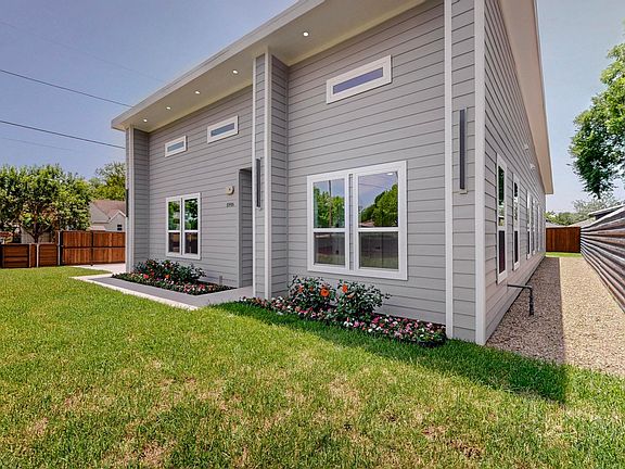 Modern and summer-ready, this stunning new construction offers sleek style and comfort inside and out. Step into an open-concept layout with soaring ceilings, ceramic plank flooring throughout, and abundant natural light. The kitchen is a showstopper, featuring a waterfall island, gas stove, modern cabinetry, and recessed lighting—perfect for entertaining. The private primary suite is a relaxing retreat, offering a spacious walk-in closet, spa-inspired bath with dual sinks, frameless glass shower, and soaking tub. Outside, enjoy your oasis with a high privacy fence, freshly planted sod and flower landscaping, and an automatic wood gate leading to a secure garage. Additional features include gutters, modern exterior lighting, and quality finishes throughout. This home blends modern design with practical luxury. Come and check out this move-in-ready home, waiting to host your summer memories.