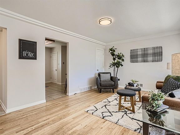 Welcome to your new move-in ready, one-level ranch home in Northglenn! This charming property is situated on a quiet and peaceful street and boasts an array of features that will surely capture your heart. Upon entering, you're greeted with new carpet and fresh interior paint throughout. The over-sized window on the front of the house floods the living room with natural light, and highlights the beautiful hardwood floor. The kitchen naturally flows off of the living room making it easy to entertain guests. With 4 spacious bedrooms, including a large primary bedroom on the main level, there's plenty of space to accommodate your family and loved ones. The updated full bathroom adds a modern touch to the home. The mother-in-law suite in the basement, with its sink and kitchenette, is perfect for guests or extended family members. There's even a separate entrance to the basement with a door that locks! You'll love the large and spacious backyard with its mature trees, ideal for summer barbeques or lazy afternoons. The home has been well maintained with a new sewer line, new plumbing, newer water heater, and recently serviced AC to keep you cool during these hot summer months. This property is also walking distance to the neighborhood middle school, and is just minutes away from shopping, restaurants, and parks. Don't miss out on this fantastic opportunity to live in this desirable Northglenn location.