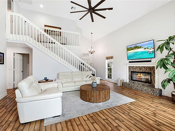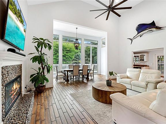 Captivating Key West Style Home – No HOA North Naples. Step into the quintessential Florida lifestyle with this stunning Key West style home located in North Naples. Offering an expansive .51-acre lot, this property presents a perfect blend of luxury, comfort, and exceptional privacy with no HOA constraints. This meticulously crafted home features 4 spacious bedrooms and 3 full bathrooms, including a versatile additional living quarter that encompasses the 4th bedroom and 3rd bathroom, in addition to its own full kitchen. This detached separate space is ideal for guests, an in-law suite, or even potential rental income, providing privacy and convenience within your estate. Experience the grandeur as you enter the property with the impressive brick paver driveway leading to a garage large enough for 4 vehicles. The home greets you with soaring cathedral ceilings and gleaming tile floors that usher you into a beautifully designed open layout that is both inviting and functional. The heart of the home, the living room, is equipped with a charming fireplace that adds a cozy atmosphere, perfect for family gatherings or a tranquil evening at home. The impact windows not only provide peace of mind but also bathe the space in natural light, creating a bright and airy feel throughout the house. Entertaining is a delight with the well-appointed kitchen offering wonderful counter space and storage, making meal preparations a breeze. Dine casually in the eat-in area or host lavish dinners in the dining area by the picturesque floor to ceiling windows, overlooking the peaceful backyard. Step outside to the screened lanai area for a serene retreat, or enjoy the sun on the spacious open deck that overlooks the beautifully landscaped, fenced yard. This outdoor haven is ideal for relaxing weekends or hosting lively gatherings with friends and family. Both central A/C units were replaced early in 2023, ensuring comfort year-round. Embrace the ease of living and the beauty of nature in this Key West inspired oasis. Your private paradise in Naples awaits, where every day feels like a vacation. Don’t miss the opportunity to own this impeccable property that is sure to impress and provides an incomparable lifestyle with endless possibilities.