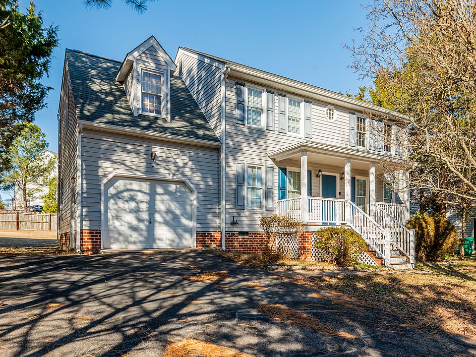 This spacious 4-bedroom, 2.5-bath single-family home with a one-car front-load garage offers comfort, style, and a prime Henrico County location near Short Pump Mall. The main level features upgraded laminate flooring, a welcoming foyer with coat closet, and an elegant dining room accented with chandelier lighting, crown molding, chair rail, and picture molding. The oversized family room is filled with natural light from four tall windows and opens to a deck and backyard, perfect for relaxing or entertaining. The large kitchen and breakfast area boast cathedral ceilings with skylights, a bay window, granite countertops, tile backsplash, stainless steel appliances, a center island, and convenient access to the deck. Upstairs, you'll find well-maintained carpeting, a generous primary suite with crown molding and a walk-in closet, and a private bath with marble countertop and upgraded fixtures, along with three additional bedrooms and a full hall bath. Every window includes blinds, and the home is currently zoned for Pinchbeck Elementary, Quioccasin Middle, and Godwin High School (as of December 15, 2025). Don't miss this beautifully maintained home in a highly desirable location.