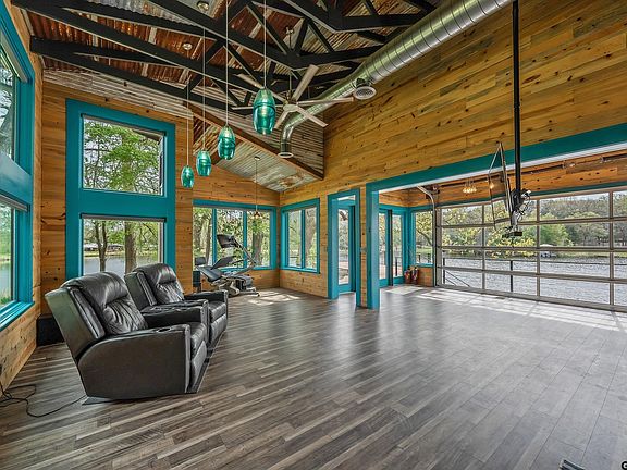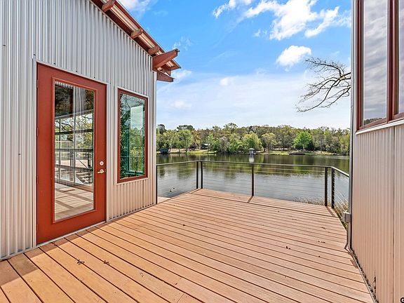 Great vibes at this Spring Club Lake House retreat with waterfront views nestled along the tranquil shores of a scenic lake close to town. This stunning modern industrial lake house offers a perfect blend of contemporary design and natural beauty. Located near Interstate 20, and conveniently located between Tyler and Lindale, Texas, this homes provides the ideal escape for those seeking peace and relaxation, with the added bonus of being easily accessible to both cities. You can also bring all of your toys - boat, trailer, etc. and there's plenty of room to build a shop! Boasting expansive waterfront views with a double garage size glass door that opens lake side to invite the outdoors in. Whether your enjoying your morning coffee or an evening sunset, the outdoor balcony is the perfect place to take in the breathtaking waterfront views. For those who love the outdoor activities, this lake house offers direct access to the water, ideal for fishing or canoeing. Spend your days casting a line fishing or paddling through the calm waters, all from the comfort of your backyard. The industrial aesthetic is beautifully showcased throughout the home, with raw steel accents and exposed beams that add to the modern charm. Pella wood casement windows and blue pine tongue and groove walls throughout add a nice touch too! You can also keep your yard looking great with a sprinkler system sourced from the lake water. The primary suite offers a peaceful retreat with its own views of the lake. If you need more living space the owner has plans drawn for adding an additional an additional bedroom. Also, there is an adjacent 2 Bedroom for sale next door. This lakefront haven is more than just a home; it's a lifestyle. Whether you're looking for a weekend getaway or a permanent escape, this property offers the perfect balance of relaxation and adventure, all just minutes from Tyler and Lindale.