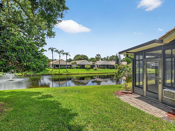 Welcome to Brighton Lakes and this rare 1 owner property! This 3 bed 2.5 bath townhouse is on the lake with beautiful water views and sounds from the fountain. The patio has been enclosed with vinyl windows and screens to give you an all seasons room! As you walk in you are greeted to soaring vaulted ceilings and lots of windows with plantation shutters to give a open voluminous feel. The eat-in kitchen has updated cherry cabinets and granite counters. The main level master suite has an ensuite bathroom with double sink/vanity and an updated shower. Upstairs you have 2 nice size guest rooms with a full bath. Large 2 car garage! This peaceful community has a heated pool, clubhouse and tennis courts! Fantastic location, walking distance to shops, restaurants and Publix, BEACH 15 minutes.