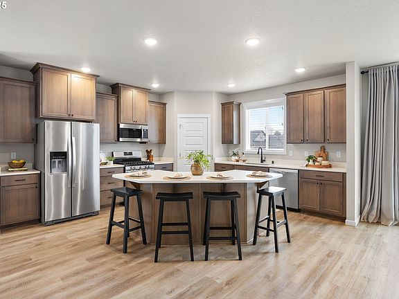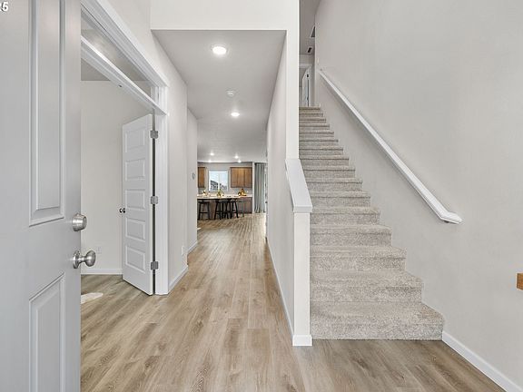 This perfectly situated home on a desirable corner lot in Cody Estates offers immediate appeal with an open-concept design and high ceilings that create a wonderful sense of space and flow. Tons of space for a growing family! The kitchen features an eat-bar, quartz counters, and stainless steel-gas appliances. Luxury vinyl flooring throughout the main level ensures beauty and easy maintenance. A fresh, neutral palette is provided by the white trim package and neutral tones, and a private main floor office is conveniently tucked away for quiet productivity. Upstairs, the owner's suite serves as a true retreat with a spacious bedroom and a huge, spa-like bathroom, complemented by three additional bedrooms (one functioning as a bonus/media room) and a practical upstairs laundry room. Outside, a sunny, south-facing patio is already engineered to accommodate the easy addition of an attached awning, completing this move-in ready package of style and function.