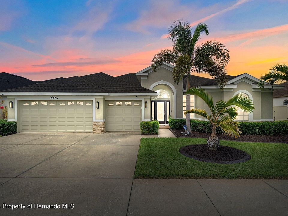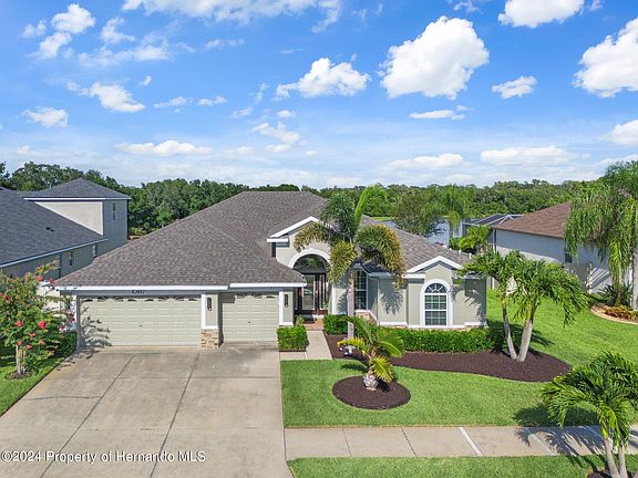 Welcome to your dream home in the highly desirable South Fork community! This stunning 4-bedroom, 3-bathroom residence with a 3-car garage is perfectly situated on a conservation lot with no rear neighbors, offering serene pond views and a private, tranquil setting. As you enter through the beautiful foyer, you are greeted by high ceilings and decorative lighting that enhance the spacious and elegant atmosphere of the home. The living spaces feature a formal living room with a decorative electric fireplace and double tray ceiling, a formal dining room with double tray ceiling, and a cozy family room with a decorative electric fireplace and triple sliders that open to the expansive lanai. The gourmet kitchen is a chef's delight, boasting granite countertops, stainless steel appliances, a breakfast bar, and a separate eating nook with sliders to the lanai. The adjacent inside laundry room offers convenience and functionality. The master suite is a true retreat, featuring a tray ceiling, sliders to the lanai, two closets, and a luxurious master bath with dual granite-topped sinks, a vanity area, a spacious walk-in shower, and a garden tub. The additional three bedrooms are generously sized with laminate flooring, providing comfort and style. Guest bath 2 includes a granite vanity and a tub with glass doors, while bathroom 3 offers a granite vanity, a walk-in shower, and a French door leading to the lanai, ideal for future pool access. The office/playroom/craft room with double door entry provides versatile space for your needs. The spacious screened lanai overlooking the pond is perfect for entertaining or simply relaxing and enjoying the view. The PVC fenced yard offers privacy and a secure space for outdoor activities. The home is equipped with a water softener, gutters and downspouts, an irrigation system, and underground utilities for added convenience. The garage is a handyman's dream, featuring a workshop with built-in custom cabinets, large safe, and an interlocking garage tile floor. This home boasts a NEW ROOF and a NEW AC system, ensuring comfort and peace of mind for years to come. South Fork community amenities include a community pool, basketball and tennis courts, a playground, a fitness center, sidewalks, and underground utilities, ensuring a vibrant and active lifestyle for residents. Don't miss the opportunity to make this exquisite home yours - where elegance, comfort, and a serene setting combine to create the perfect living experience. Close to all amenities including schools, shopping, restaurants, medical facilities, boating, fishing, attractions, airports, Florida's stunning beaches, and easy commuting to Tampa and Orlando! Make this your home today!