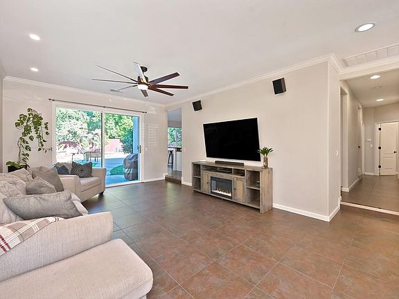 Experience the rare opportunity to own one of the most breathtaking residences in the highly sought-after Vintage Oaks neighborhood. This exquisite home masterfully blends sophisticated design, modern comfort, and exceptional functionality offering everything you could possibly desire and more. Step inside to discover an expansive single-level layout featuring a grand primary suite and three additional bedrooms, complemented by two beautifully appointed bathrooms. Upstairs, a spacious fifth bedroom, an impressive bonus/game room, and dual dedicated office spaces provide the perfect balance of privacy and versatility for today's lifestyle. The heart of the home is an entertainer's dream: a gourmet kitchen showcasing double islands, endless granite countertops, and generous cabinetry perfect for gatherings both intimate and grand. Owned, fully paid-off solar panels ensure energy efficiency and sustainable living without compromise. The oversized garage offers abundant built-in cabinetry and deep storage capacity, while the property's meticulous professional landscaping adds to its refined curb appeal. Outdoors, your private resort awaits. The backyard oasis features a spectacular pool with ample seating, a luxurious built-in spa, and a mesmerizing cascading rock waterfall.