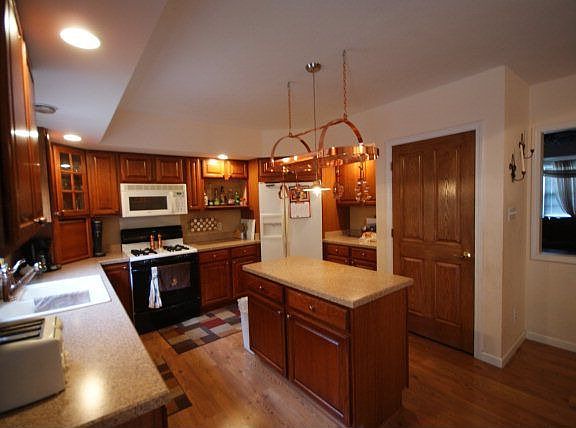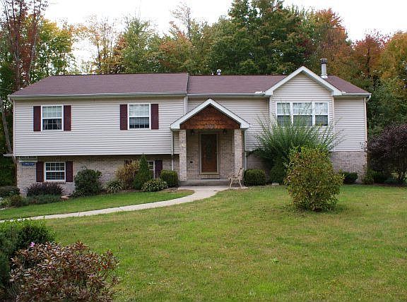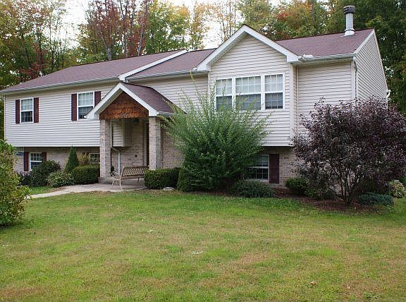 Outstanding 2200+ Sq. Ft. Split Entry (built in 2004) overloading w/ amenities. Large kitchen/dining area w/ Cherry cabinets, quality counter-tops, pantry, brass pot-rack over center-island, & wall-to-wall cupboard. Gas stone fireplace & beamed ceiling in living rm. Master suite w/ walk-in closet(8x12) & f. bath. 2 additional bedrms & f. bath. 18x26 family room, 1/2 bath & utility rm. Entry area w/ glass railing, central air, fire hose in kitchen, large lot, cement drive, tons of storage, 2-car attached garage and additional detached 2 car garage with an upstairs, deck, stone patio. An exceptional home that needs to be experienced!